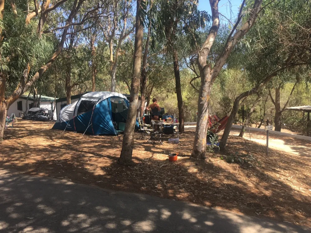 Il campeggio è molto carino, molto basico a livello di strutture come bagni, casette e roulotte. Ci hanno assegnato una bellissima piazzola sotto gli alberi per fortuna ma la maggior parte, per tende piccole, sono sotto un incannucciato e il terreno è molto duro, vi servirà un martello. Ottimo il bar ristorante, prezzi accessibili e personale gentile, conviene prenotare infatti per assicurarsi un tavolo. La spiaggia è raggiungibile a piedi in 10 minuti ed è meravigliosa, dune e promontori di scogliera circondano una grande cala. Peccato fosse molto sporca ma questo dipende dai visitatori!!