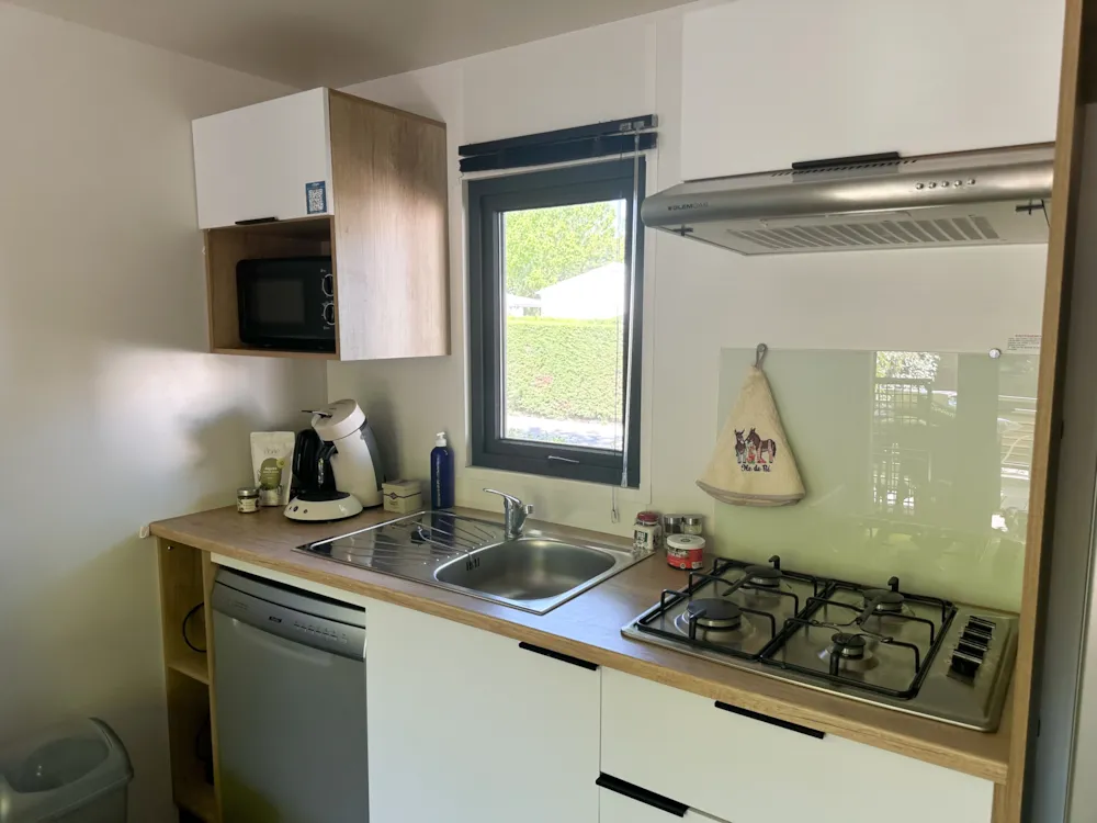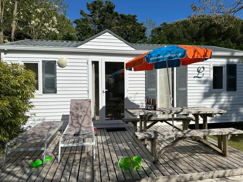Le Tiny Home est une véritable petite maison sur roues de 2 étages : le confort d’un mobil-home conjugué à l’esprit cosy d'une maisonnette ! Vous y trouverez au rez-de-chaussée un séjour, une chambre avec un lit double, une kitchenette équipée et une salle de bain avec douche et WC. Une deuxième chambre mezannine avec 2 lits simple se situe à l'étage. Cette petite maison atypique est idéale pour un séjour en famille ou entre amis en bord de mer, en plein coeur de l'Île de Ré.