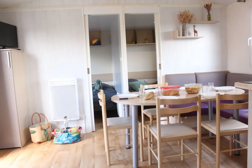 2 mobil homes de 3 chambres différents sont à la location. Il y a donc un mélange de photos des 2 mobil homes sur le site internet. Pour des questions d’organisation, il n’est pas possible de choisir son mobil home.