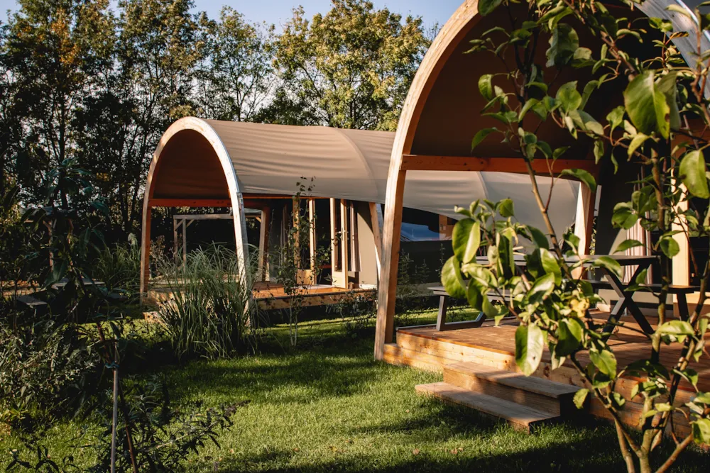 Een heerlijk knusse lodge (9 m x 4,2 m) voor 4 personen met een glazen gevel om optimaal van het buitenleven te kunnen genieten. De Zwaluwnest Lodges staan met 5 stuks bij elkaar op een groen grasveld (veld H), niet ver van de centrale voorzieningen, visvijver en speeltuinen. In de Zwaluwnest Lodge vindt u een woongedeelte met televisie, haard, keuken met eethoek, twee slaapkamers (afmetingen bedden 2 m x 0,8 m) waarvan één op een slaapvide, een badkamer met douche, wastafel en toilet. Een kinderstoeltje of een kinderbed is bij de receptie verkrijgbaar. De keukeninrichting is natuurlijk compleet met o.a. bestek, serviesgoed, pannen, kookgelegenheid, koelkast, combi-magnetron, Nespresso koffiezetapparaat en broodrooster. Hand- en theedoeken zijn niet aanwezig. Voor de Zwaluwnest Lodge ligt een terras met comfortabele tuinmeubelen. Op de dag van aankomst is de accommodatie om 15.30 uur beschikbaar, op de vertrekdag dient de accommodatie om 10.00 uur verlaten te zijn. Honden zijn niet toegestaan.