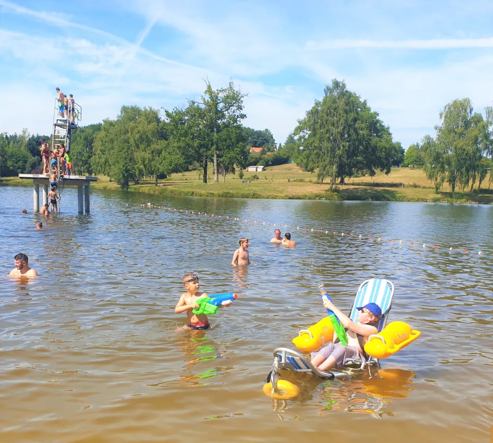 Le plan d'eau, emplacement ombragé, calme et familiale Sanitaires très propres