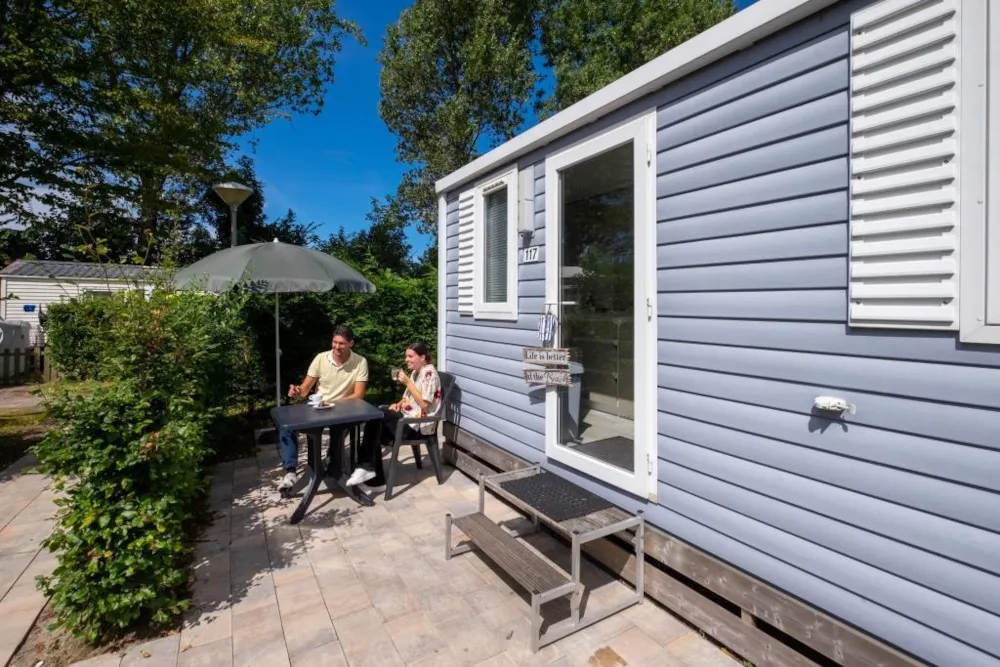 Le spacieuse Premium Lodge, équipé pour quatre personnes est l’idéal pour un séjour plus luxueux. Ce magnifique Lodge confortable est unique dans sa conception. De chaque côté se trouvent deux chambres à coucher, chacune avec sa propre salle de bains avec une douche et des toilettes. Les couettes et oreillers sont prêts dans les chambres. La salle de séjour a un coin salon et table à manger combiné. La cuisine est entièrement équipée avec un lave-vaisselle et machine à café Nespresso (cups). Le salon et les deux chambres à coucher ont accès à une merveilleusement grande véranda. La véranda a une surface de 22m2 avec un coin salon confortable en grande partie couverte. Vous pouvez donc toujours profiter du plein air, quel que soit le temps. Veuillez noter que toutes les locations sont non-fumeurs et que les animaux domestiques ne sont pas autorisés.