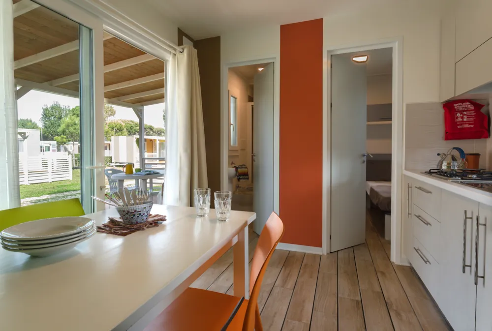 – A room with two single beds or a French bed, a sofa bed in the living area and a room with a double bed.