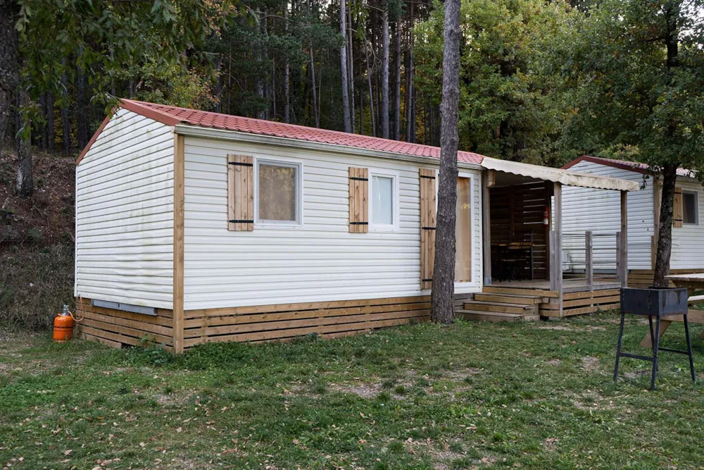 Bungalow pour 2/3 personnes avec cuisine/salle à manger, 1 chambre séparée et salle de bain.