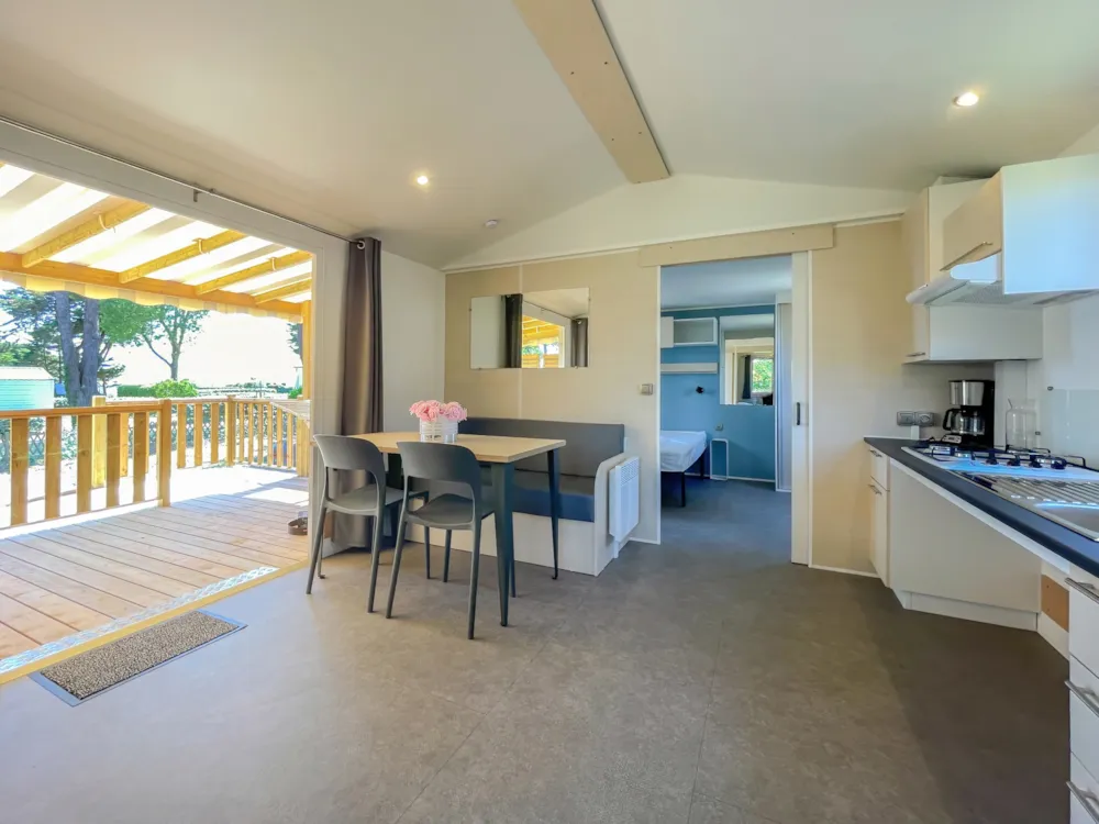 Mobil home de 8 personnes pour une réservation de 4 : forcément espace plus grand et spacieux. Matelas confortable pour dormir
